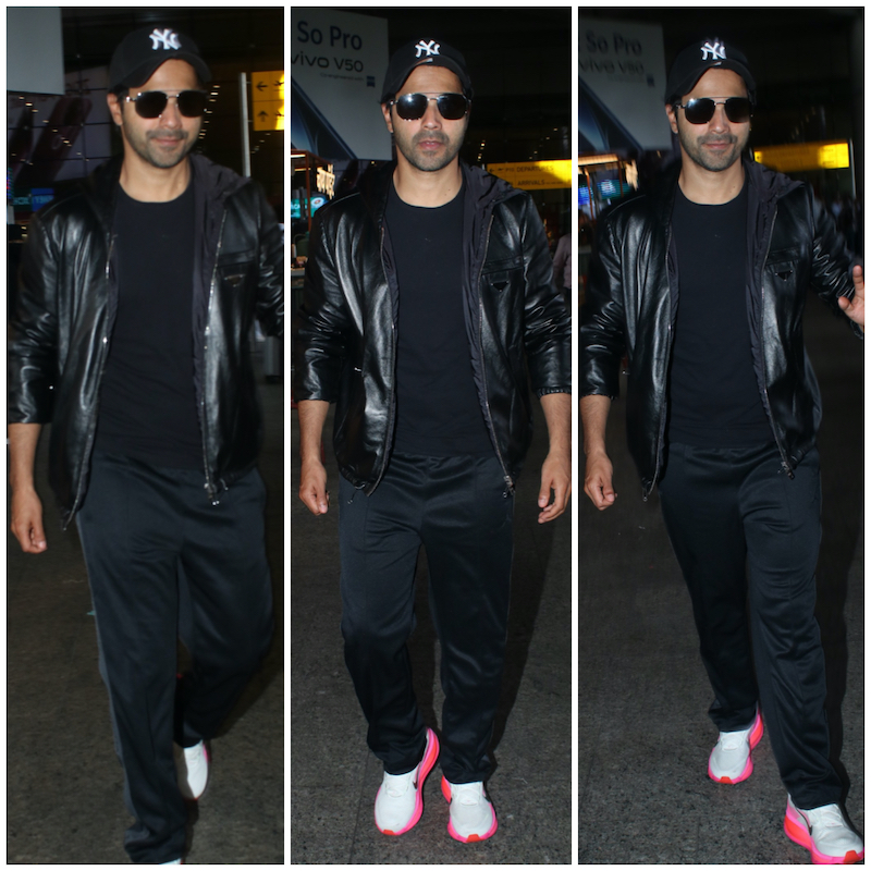 बॉलीवुड के चहेते स्टार वरुण धवन आज सुबह मुंबई एयरपोर्ट पर नजर आए, जहां वे अपने अगली फिल्म है जवानी तो इश्क होना है की विदेशीशूटिंग पूरी कर लौटे। ऑल-ब्लैक लुक में स्पोर्टी अंदाज़ में नज़र आए वरुण — काले टी-शर्ट, जैकेट और ट्रैक पैंट्स के साथ सफेद स्नीकर्स, कैप औरस्टाइलिश चश्मे में उन्होंने एक बार फिर फैशन स्टेटमेंट सेट कर दिया।