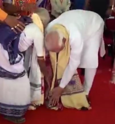 मोदी ने आगे कहा, ओडिशा अमीर है, लेकिन यहां के ज्यादातर लोग गरीब हैं। BJD ने गरीबी दूर करने के लिए कुछ नहीं किया। ओडिशा की अस्मिता खतरे में है। भाजपा इसकी रक्षा करेगी। भाजपा ने ओडिशा की एक आदिवासी बेटी को भारत का राष्ट्रपति बनाया। पिछले 6 साल से जगन्नाथ मंदिर के 'रत्नभंडार' की चाबी खो हुई है। राज्य सरकार ने बाद में कहा कि डुप्लिकेट चाबी मिल गई है। सवाल यह है कि यह डुप्लिकेट चाबी क्यों बनाई गई? चाबी खो जाना चिंता की बात है, लेकिन डुप्लिकेट चाबी इससे भी ज्यादा चिंता की बात है। प्रधानमंत्री ने कहा, 26 साल पहले आज के दिन अटल बिहारी वाजपेयी की सरकार ने पोखरण में परमाणु परीक्षण किया था। एक वह दिन था जब भारत ने दुनिया को अपने सामर्थ्य का परिचय करवाया था और दूसरी ओर कांग्रेस है, जो बार-बार लोगों को डराने की कोशिश करती है। कंधमाल में PM ने स्टेज पर पद्मश्री विजेता पूर्णमासी जानी के पैर छुए। पूर्णमासी एक कवयित्री और सामाजिक कार्यकर्ता हैं। उन्हें 2021 में पद्मश्री से सम्मानित किया गया था।