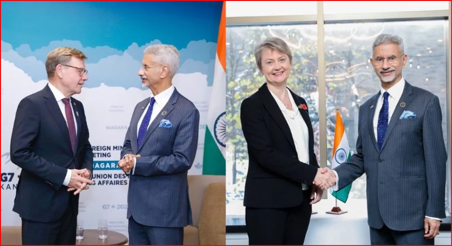 भारत के विदेश मंत्री एस. जयशंकर ने कनाडा में आयोजित जी-7 विदेश मंत्रियों की बैठक के दौरान प्रमुख वैश्विक साझेदारों के साथ महत्वपूर...